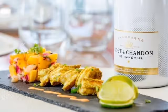 • Beverages – Water, Juices, Sodas, Coffee, Beer, Wine, and a Fully Stocked Bar