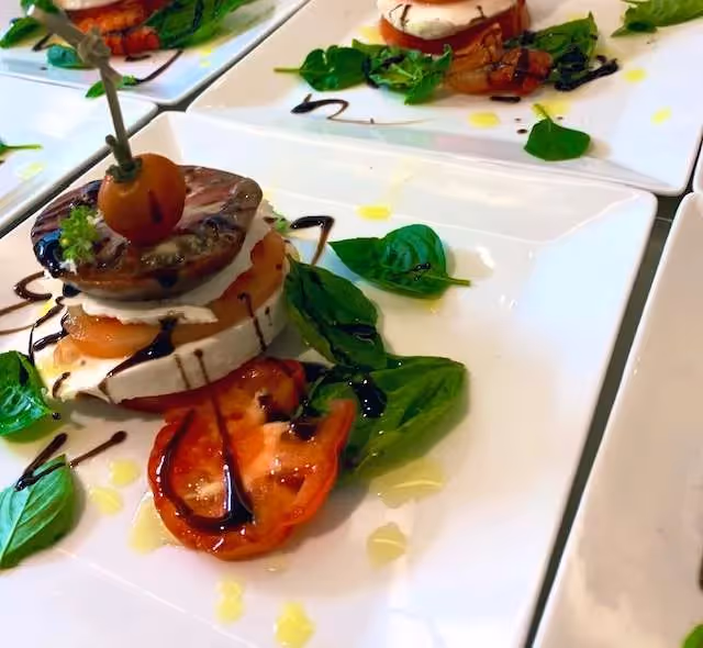 - Fruit & nut stuffed grilled peppers with couscous & pomegranate Caprese salad with truffle balsamic glaze & fresh local basil