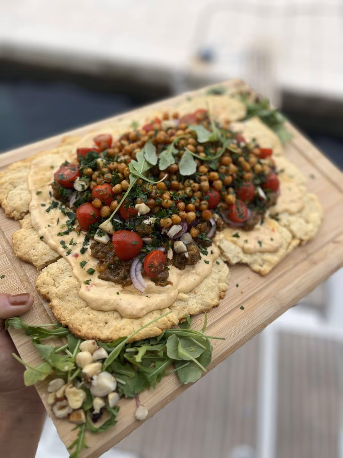 - Fresh made biscuit with baba ganoush, roasted chickpeas and tomatoes