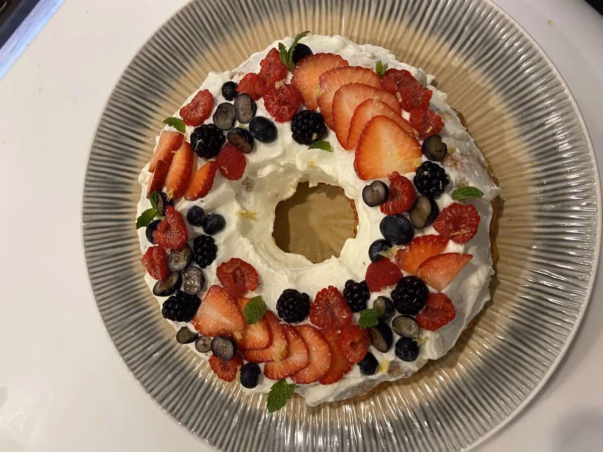 - Gluten-Free Chocolate Brownie with Italian meringue and fresh berries