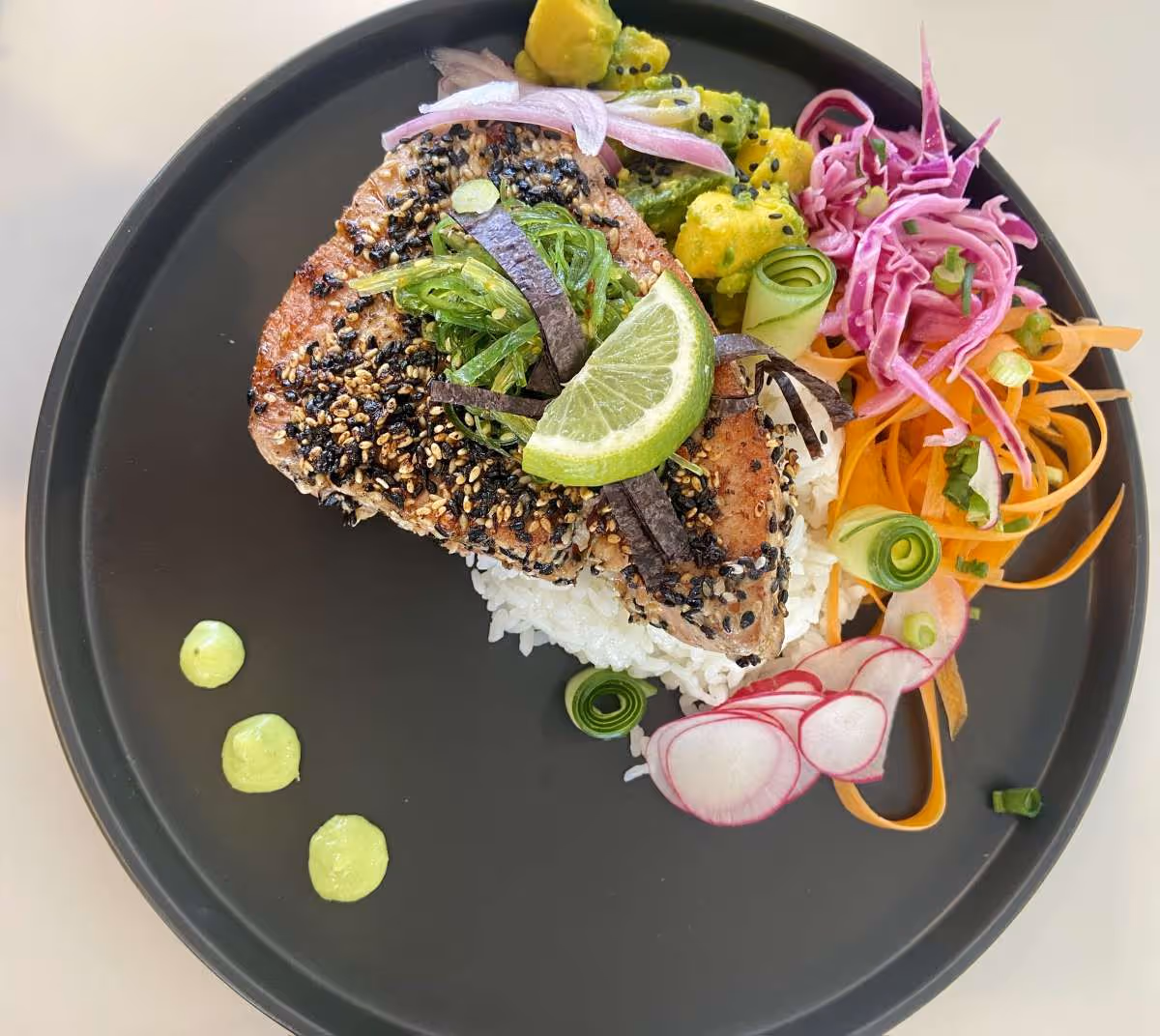 Fried halloumi, lamb kofta, falafel, hummus, tzatziki, Greek salad, olives, flatbreads - Tuna Poké Bowl