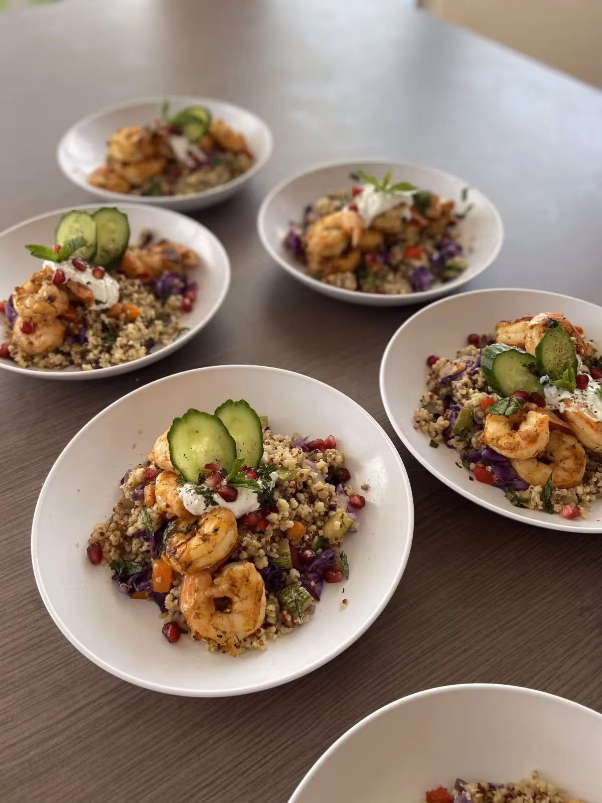 Mediterranean roasted vegetables, quinoa, lemon & parsley yogurt sauce - Pork & Scallops