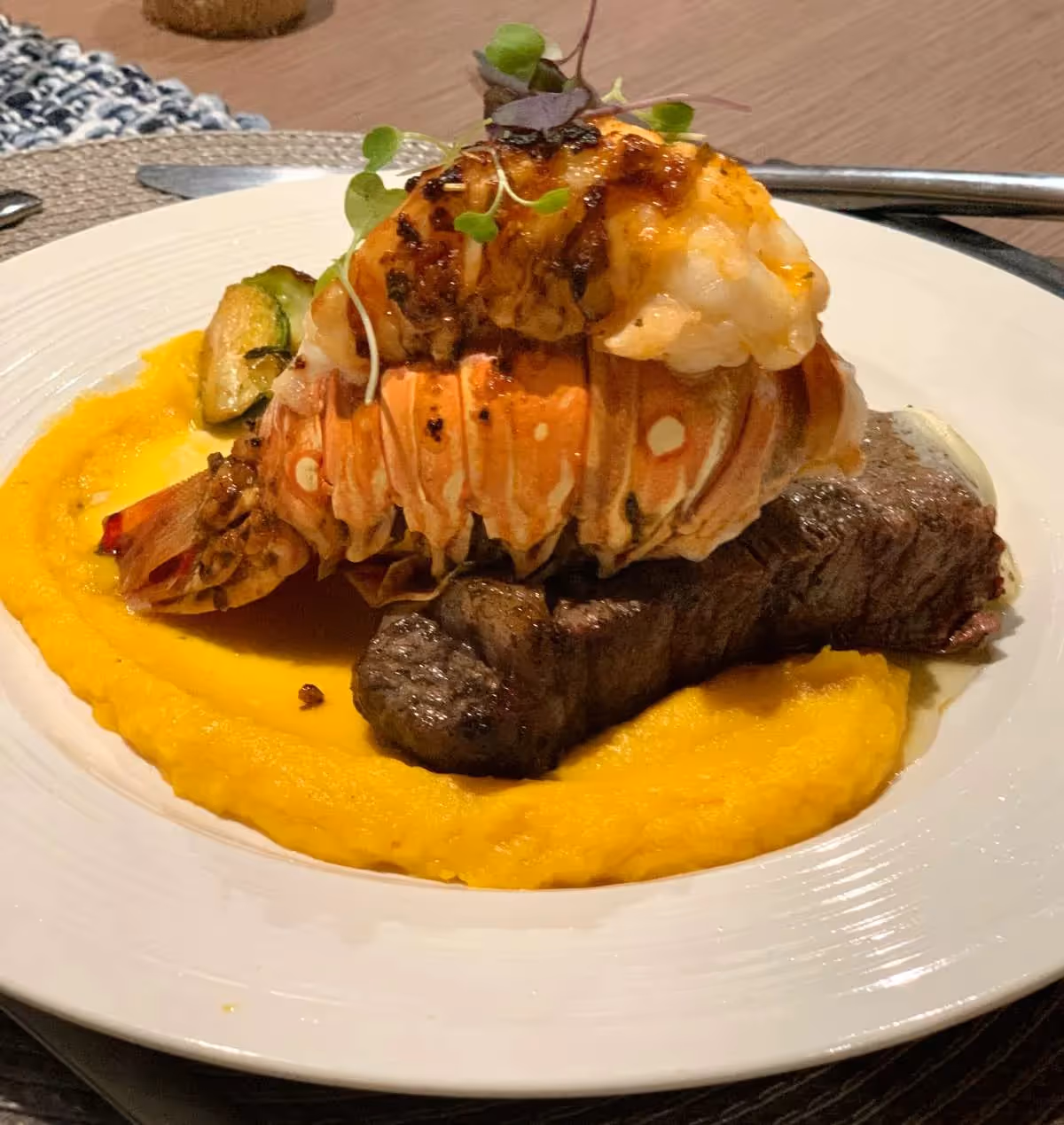 Saffron risotto, mango salsa, mango sauce, balsamic reduction - Salmon