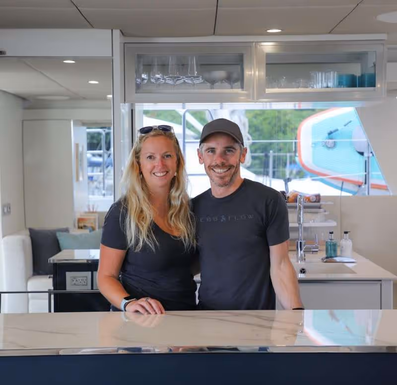 Since 2019, Rosie and Adam have been sailing and living in the British Virgin Islands, which they now fondly call home. Together, they combine adventure, hospitality, and gourmet cuisine to deliver unforgettable experiences for every guest who steps aboard.