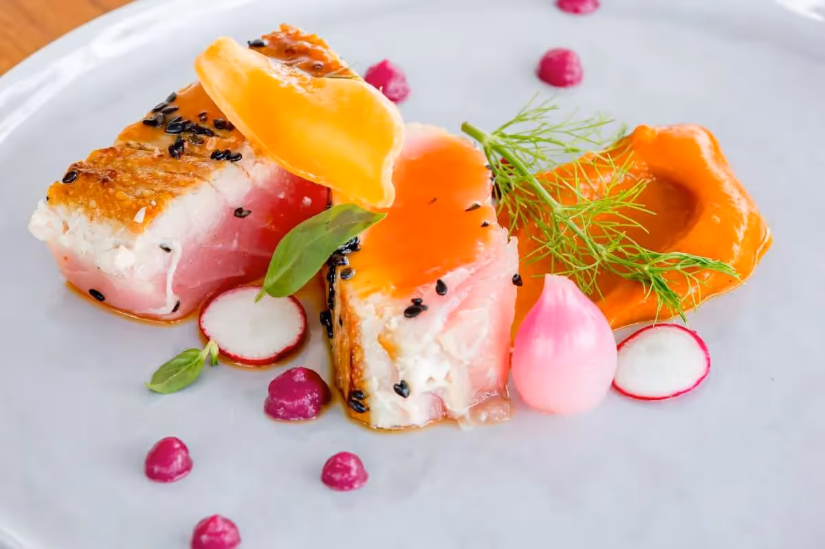 - Chilean Seabass with Hot & Sour Coconut Sauce, steamed rice & Veg