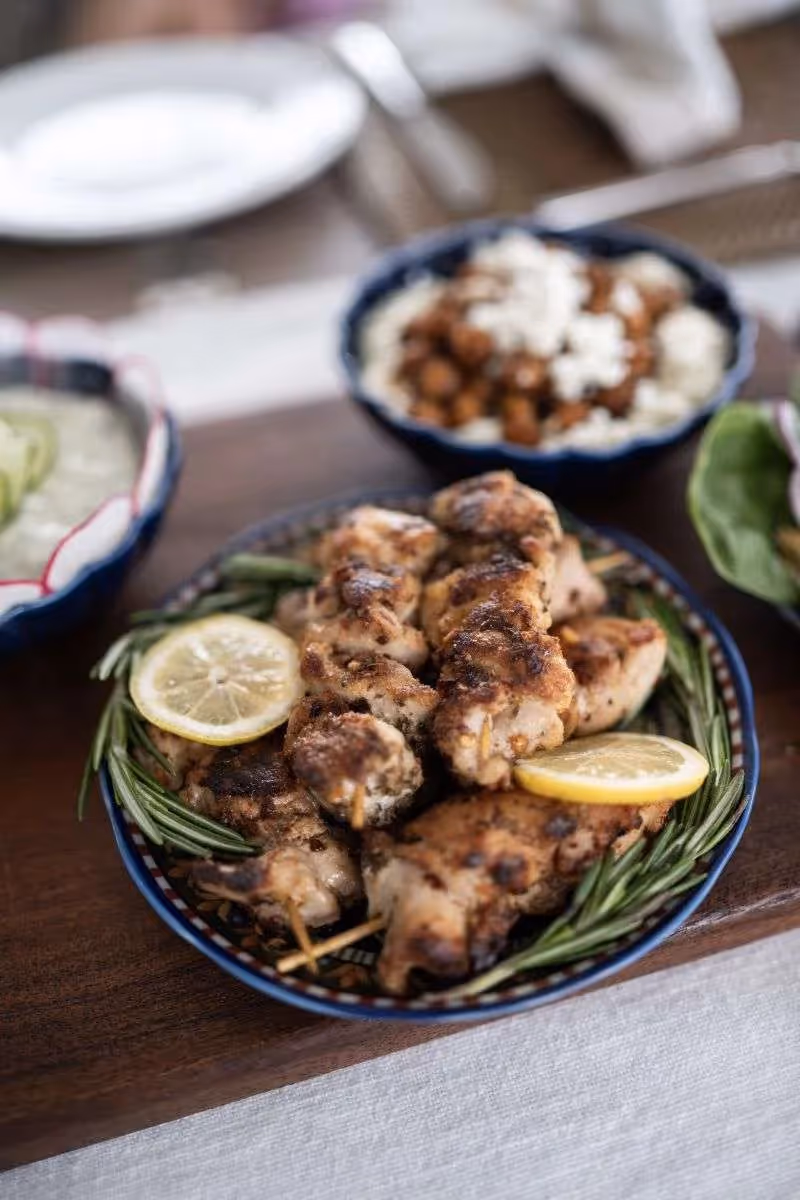 - Tabouleh Salad Ginger Garlic Chicken Breast - Feta - Tzatziki - Tahini Dressing