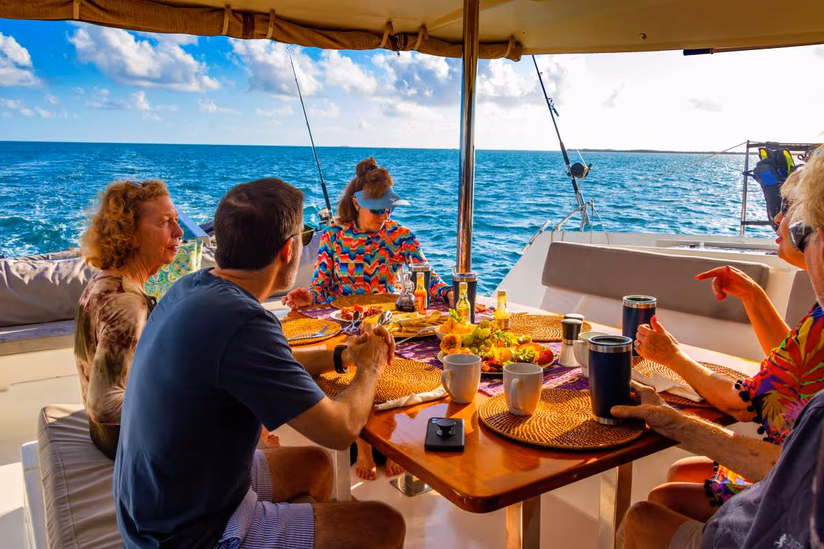 A 52-foot Lagoon catamaran with five luxurious queen en-suite cabins. Designed for up to 10 guests with indoor & outdoor living spaces, sun decks, and a hard top bimini for shade, she offers style, comfort, and unforgettable cruising around Belize.