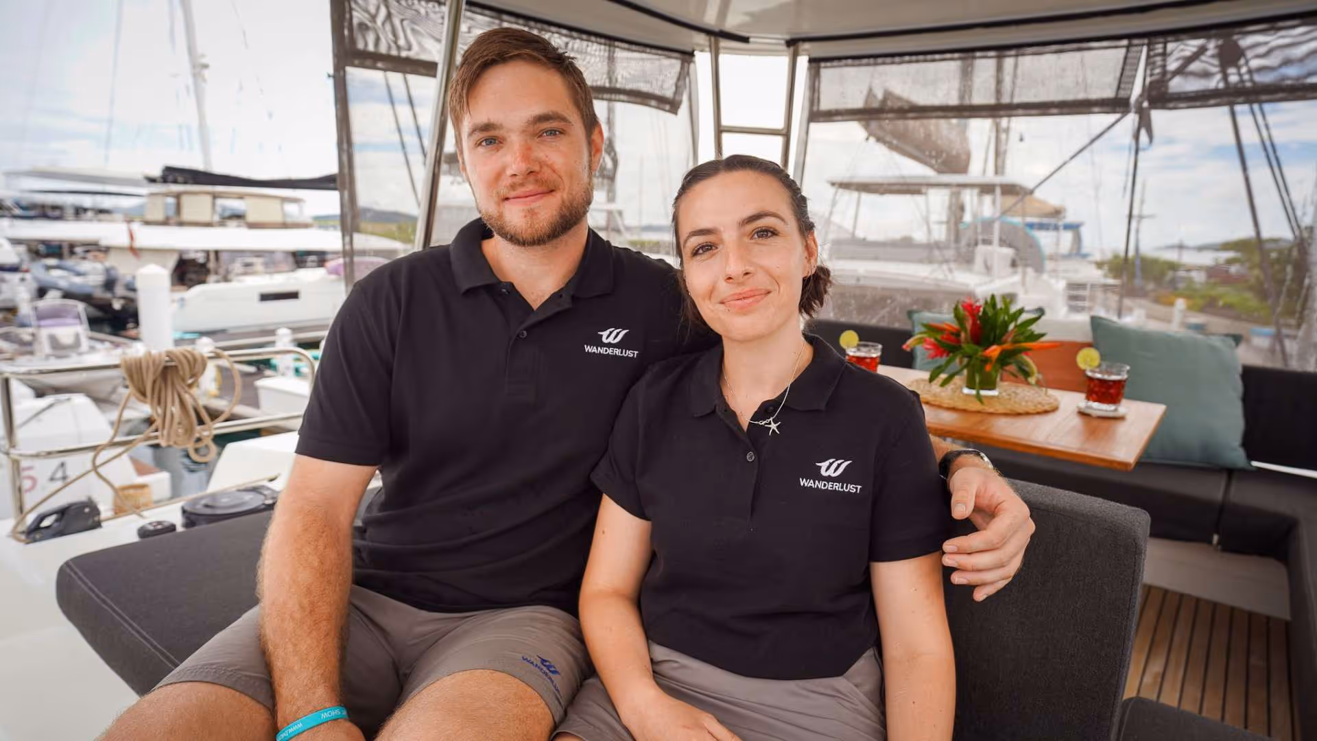 Wanderlust is a 50-ft catamaran with three queen cabins and one double for 8 guests. She offers cozy living spaces and outdoor lounging. Perfect for groups who value both comfort and intimacy.
